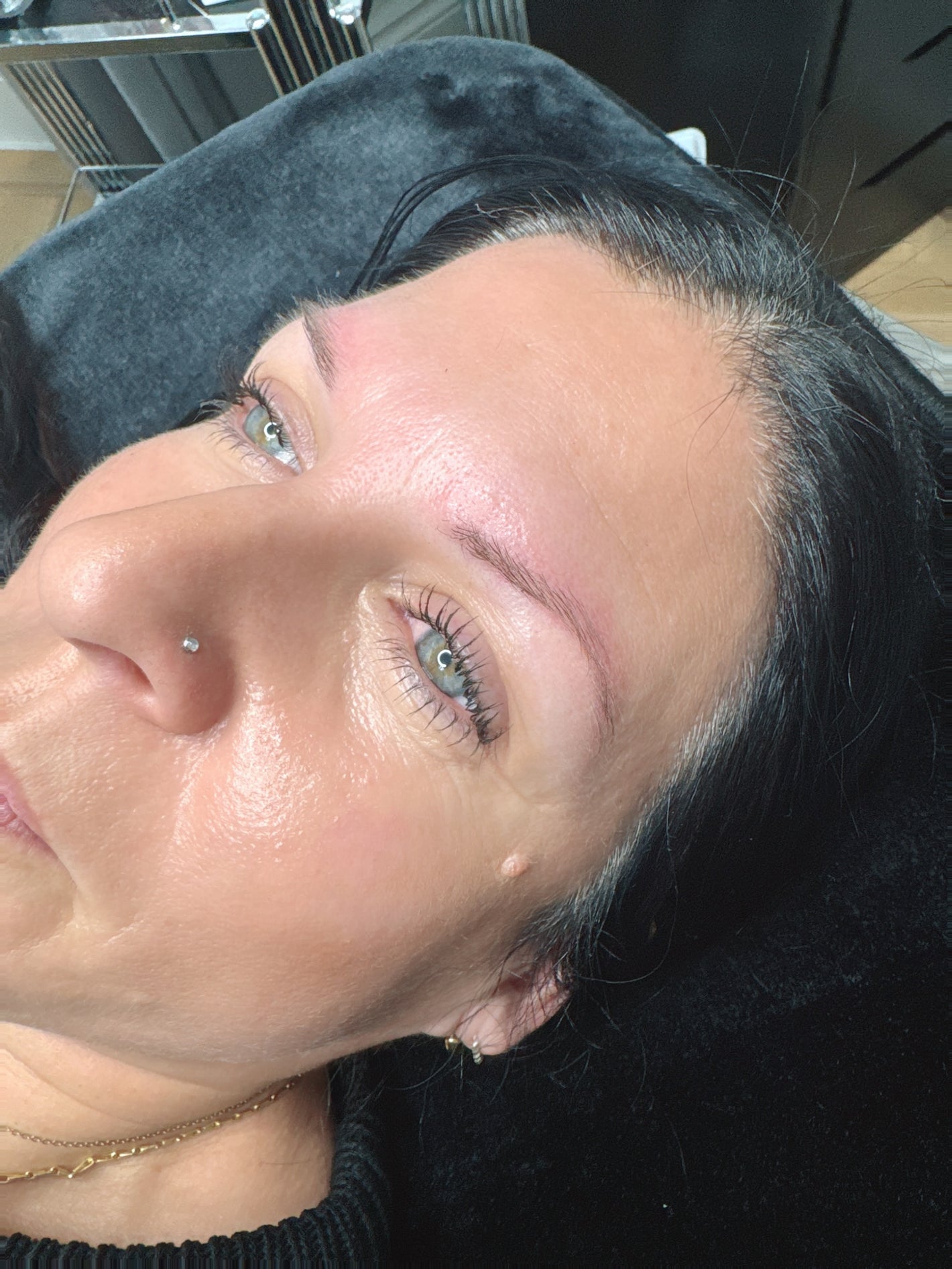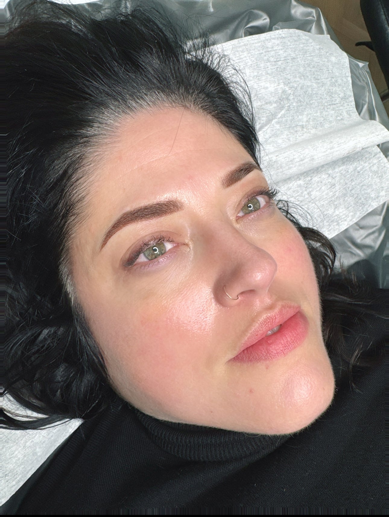 Semi permanent makeup complete. Brows have been shaded using the perfect ink tone deposited under the skin. The clients perfect brow shape has been tailoured & fixed and can be enjoyed for long lasting results.